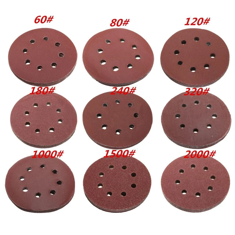 .Gallery for 10pcs 125mm 5" Hook Loop Sanding Discs 8 Hole Sandpaper Pads Set 60Grit-2000Grit Sander Disc for Woodworking Polishing Tools