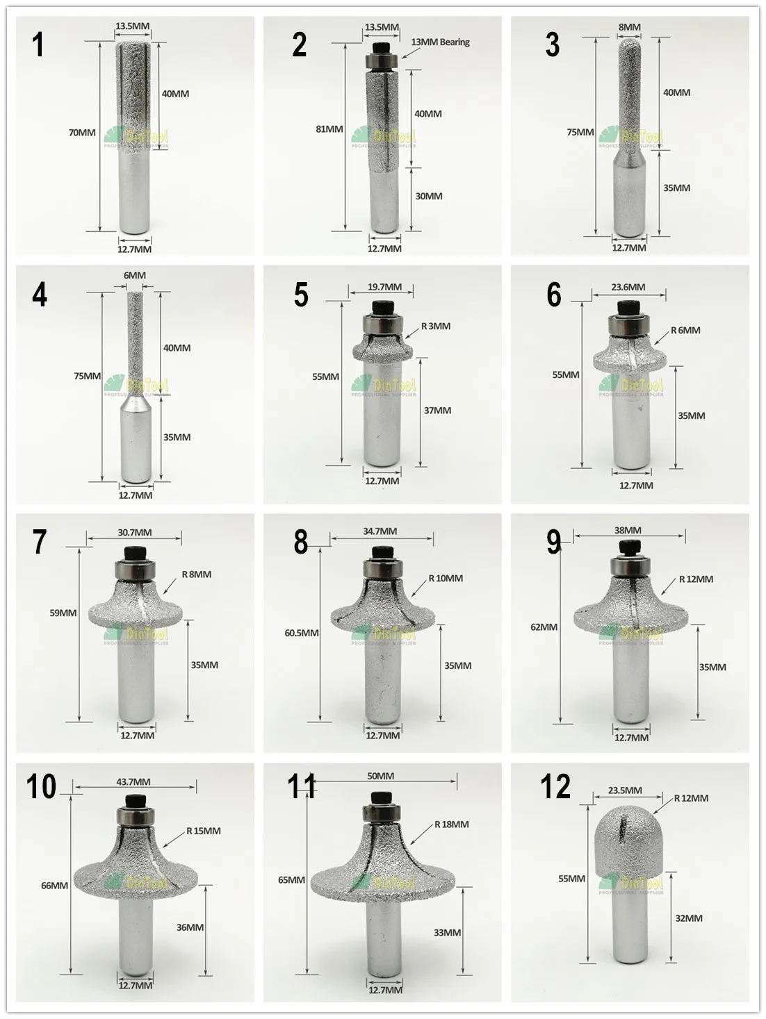 Addition Information of SHDIATOOL 1pc Vacuum Brazed Diamond Router Bits With 1/2" Shank For Stone Router Cutter For Granite & Marble